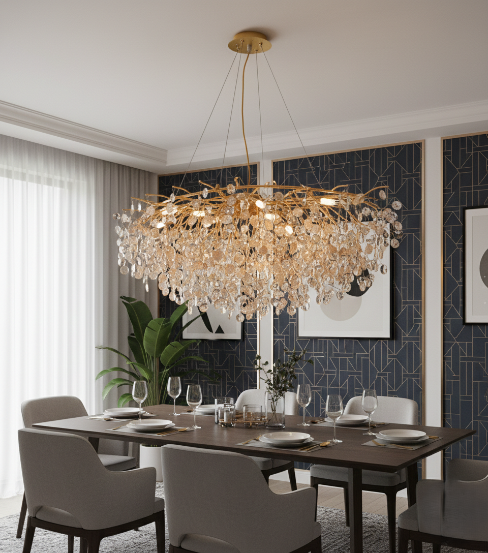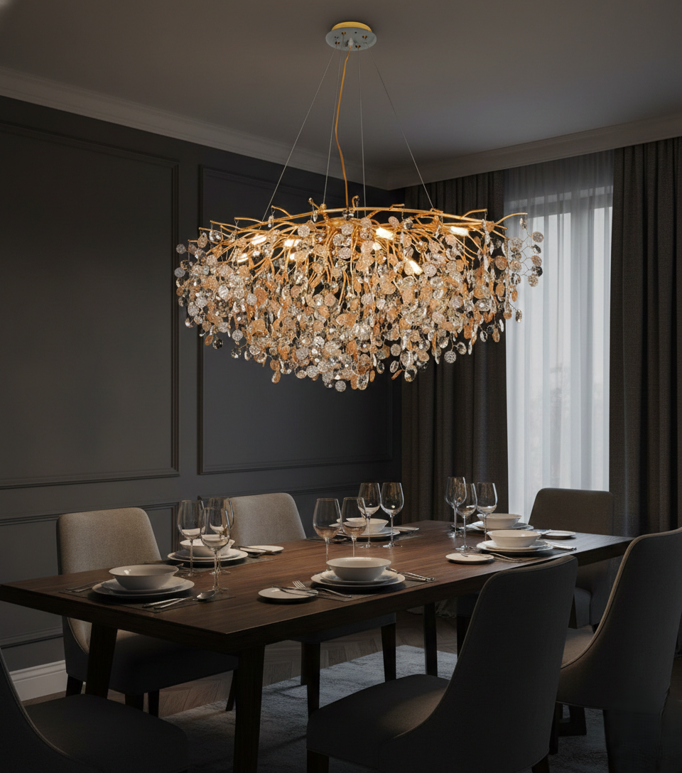 Crafted with attention to detail, this chandelier is ideal for contemporary as well as classic interiors. The elongated design ensures balanced illumination across your dining table while serving as a striking decorative centerpiece.