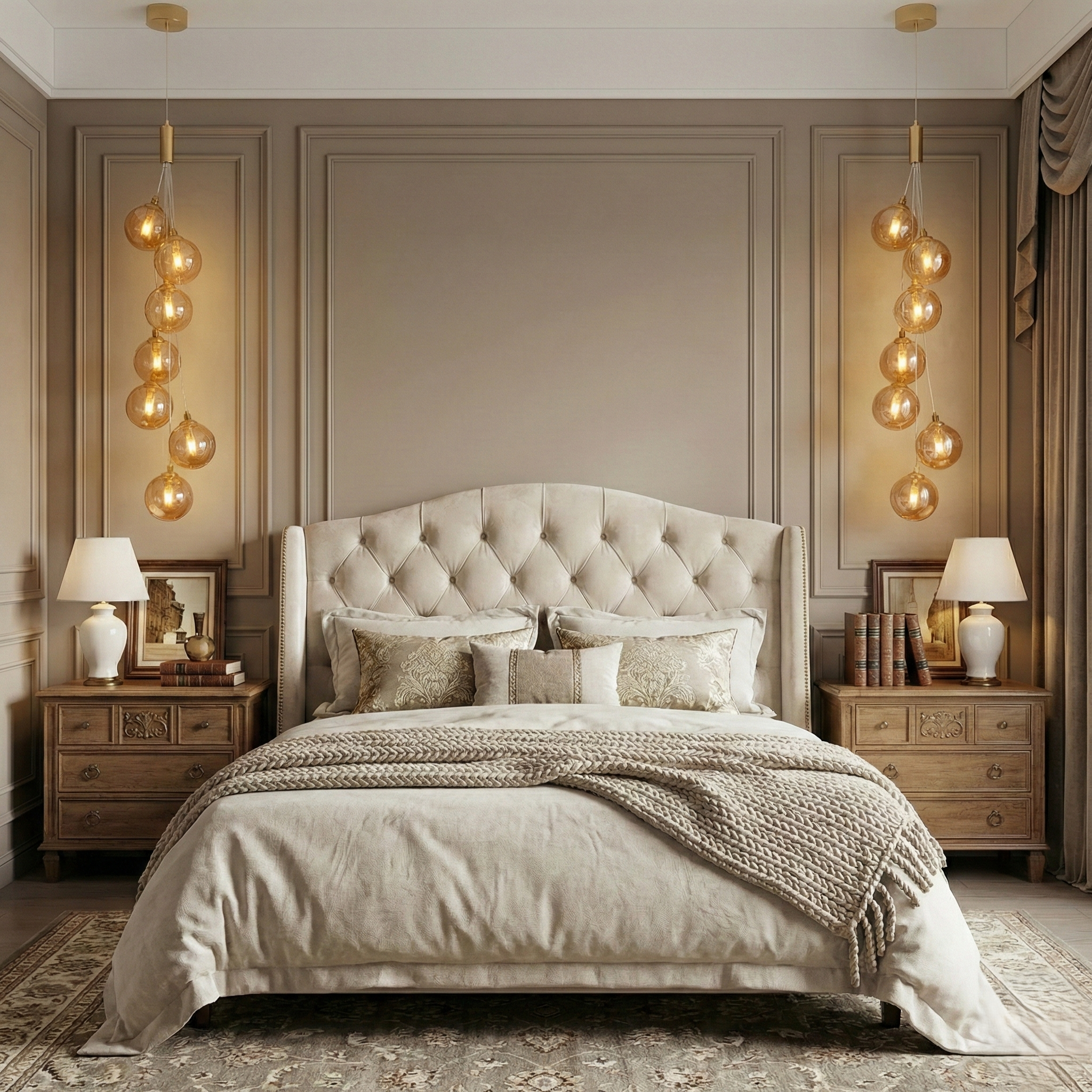 Cascading Elegance: A vertical design featuring 9 distinct light points that draw the eye upward.