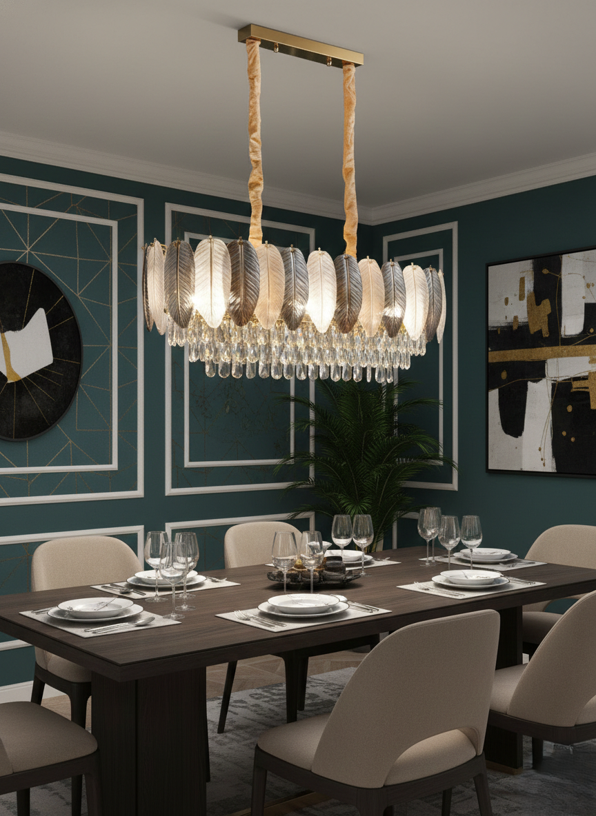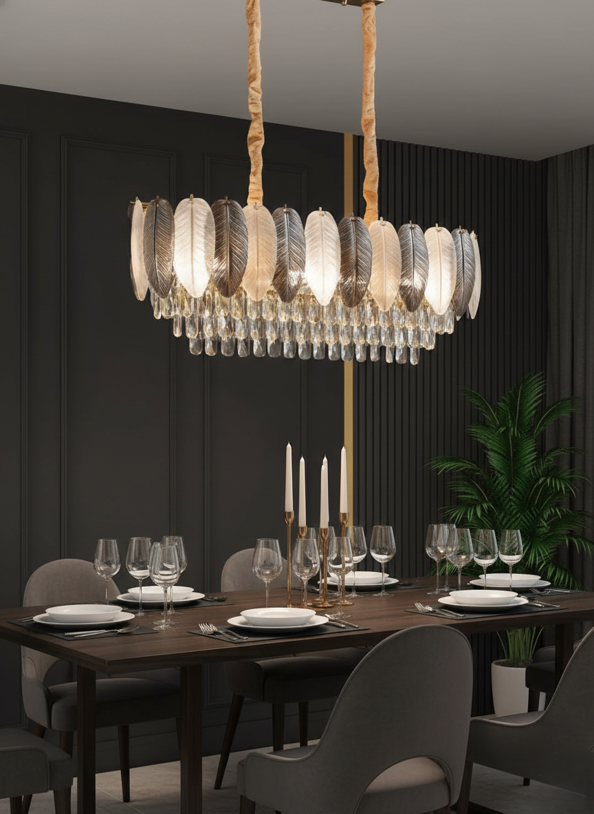 With a sleek size of 800 × 300 mm, this chandelier is ideal for dining tables, kitchen islands, and stylish living spaces. The integrated 3C LED lighting allows you to easily switch between three color temperatures—warm, neutral, and cool—so you can customize the atmosphere to suit any occasion, from cozy dinners to vibrant gatherings.
