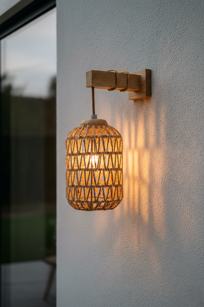 In StockEnhance your interiors with this beautifully crafted wall light that blends natural textures with modern elegance. Designed to create a warm and inviting ambiance, this fixture is perfect for both residential and commercial spaces.