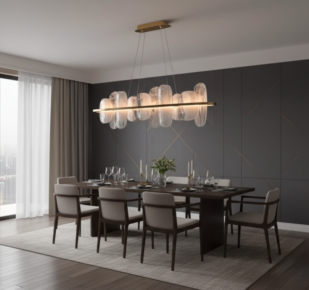 Perfect for contemporary as well as classic interiors, this chandelier serves as both a functional lighting solution and a striking decorative centerpiece. Its refined design effortlessly elevates your dining area, making it more stylish and welcoming.