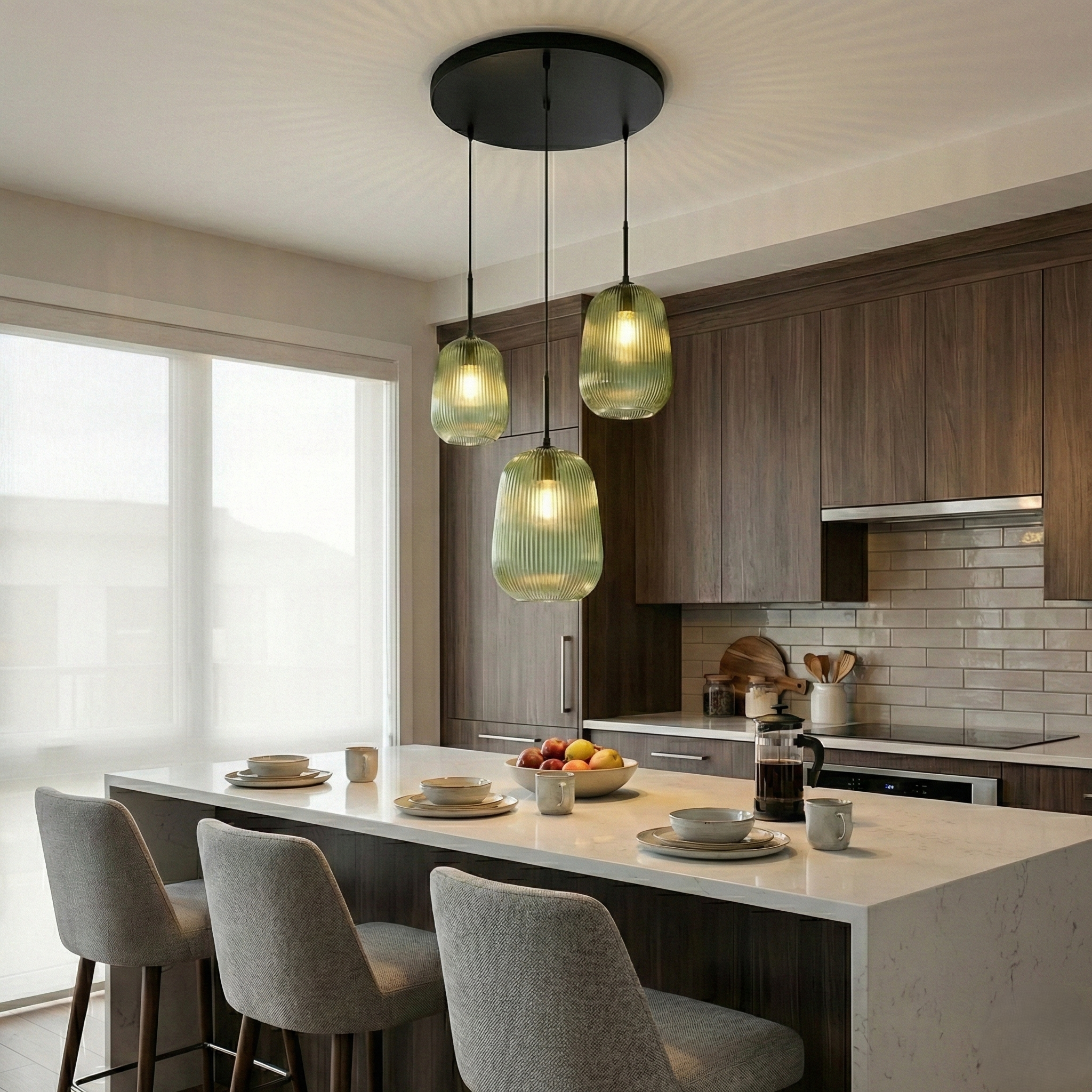 The Aura Rib Pendant brings understated elegance to modern interiors with its softly ribbed glass shade and warm ambient glow. Designed with a durable metal structure paired with finely crafted glass, this pendant light creates a calm and inviting atmosphere. Its minimalist silhouette makes it ideal for bedside lighting, dining areas, kitchen islands, and contemporary living spaces. The Aura Rib Pendant blends seamlessly with modern, Scandinavian, and Japandi-inspired interiors, adding both style and functionality.