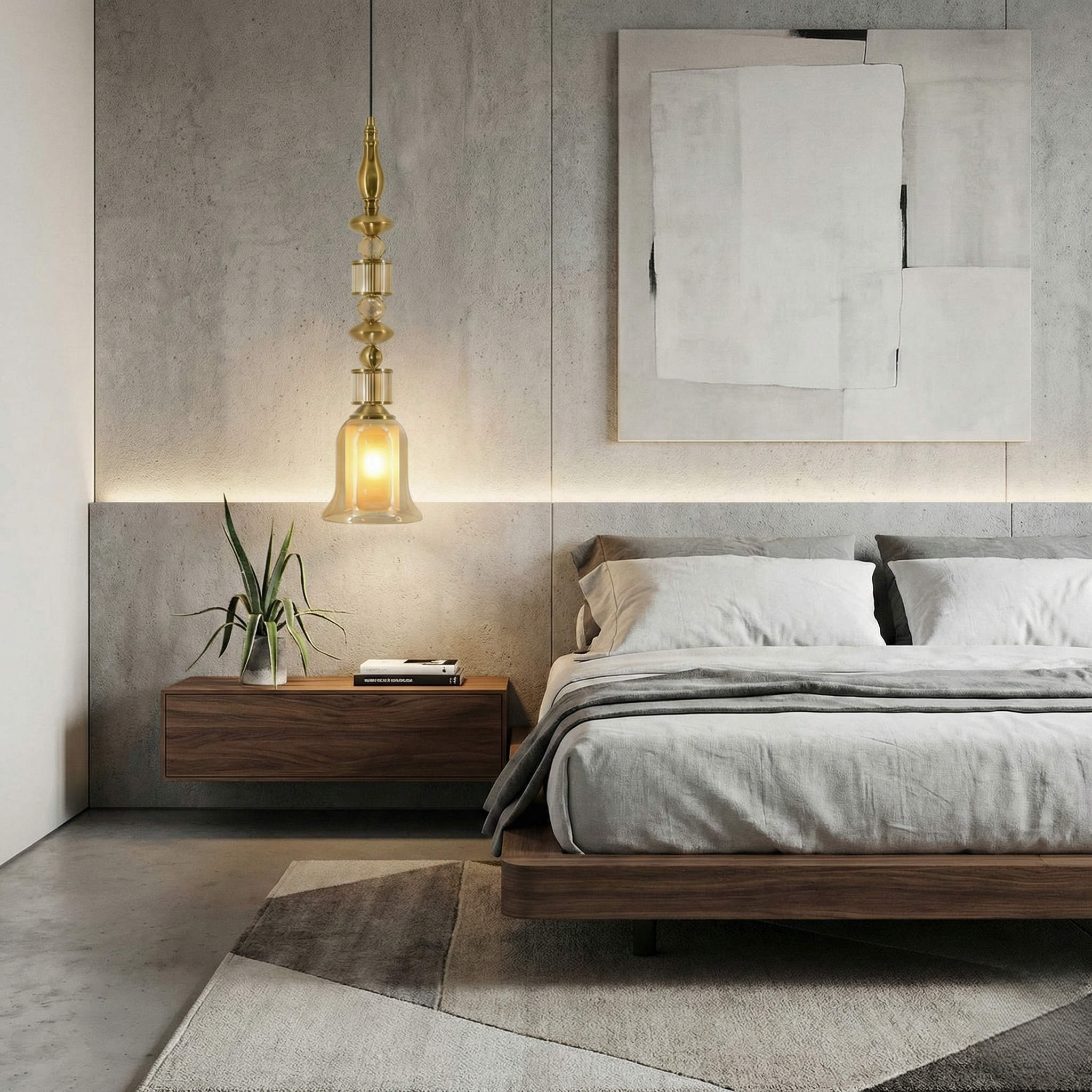 Warm Diffusion: The amber-tinted glass shade filters light to create a cozy, inviting atmosphere.