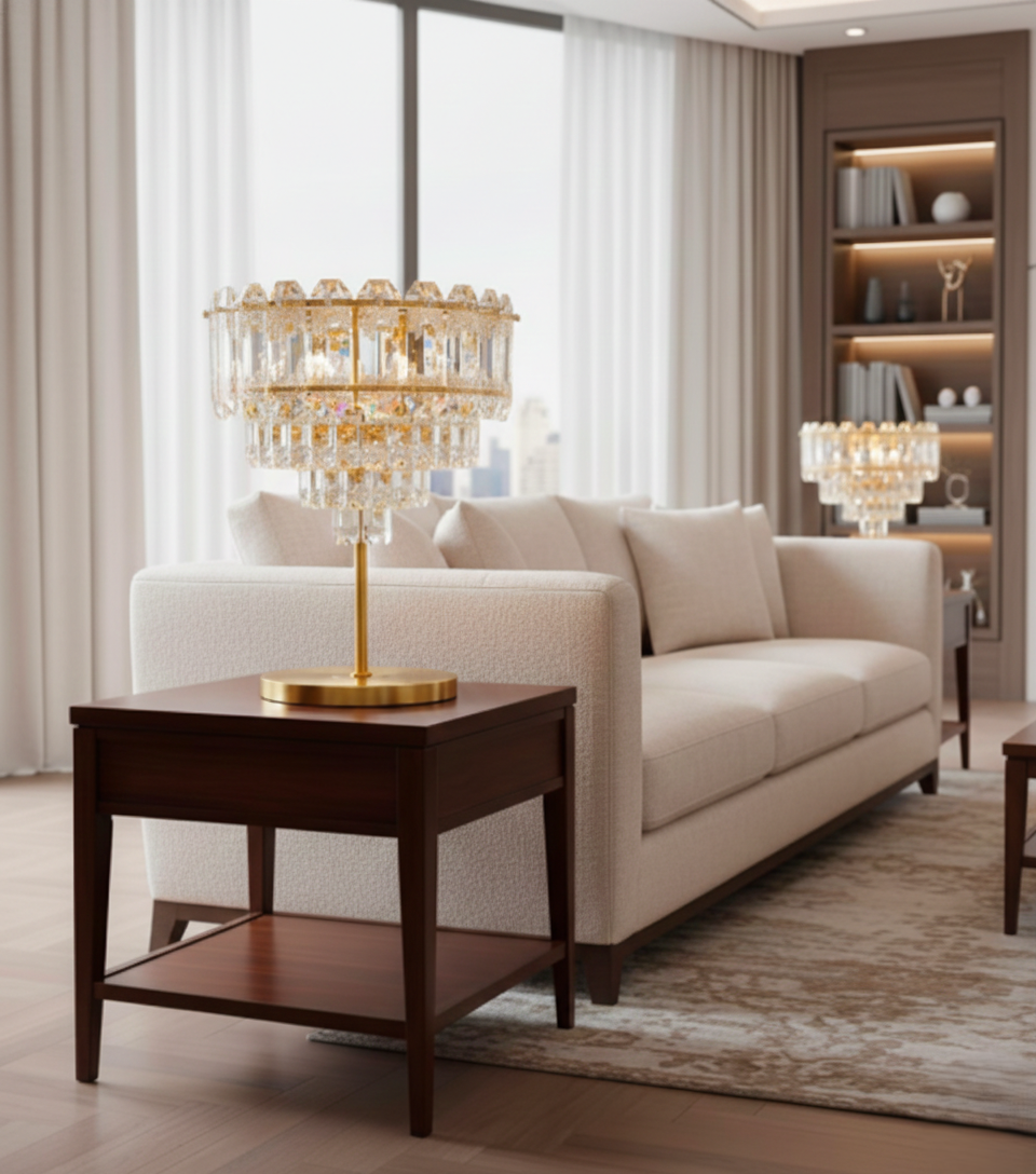 Design: The crystal detailing enhances light reflection, creating a sophisticated and luxurious ambiance.