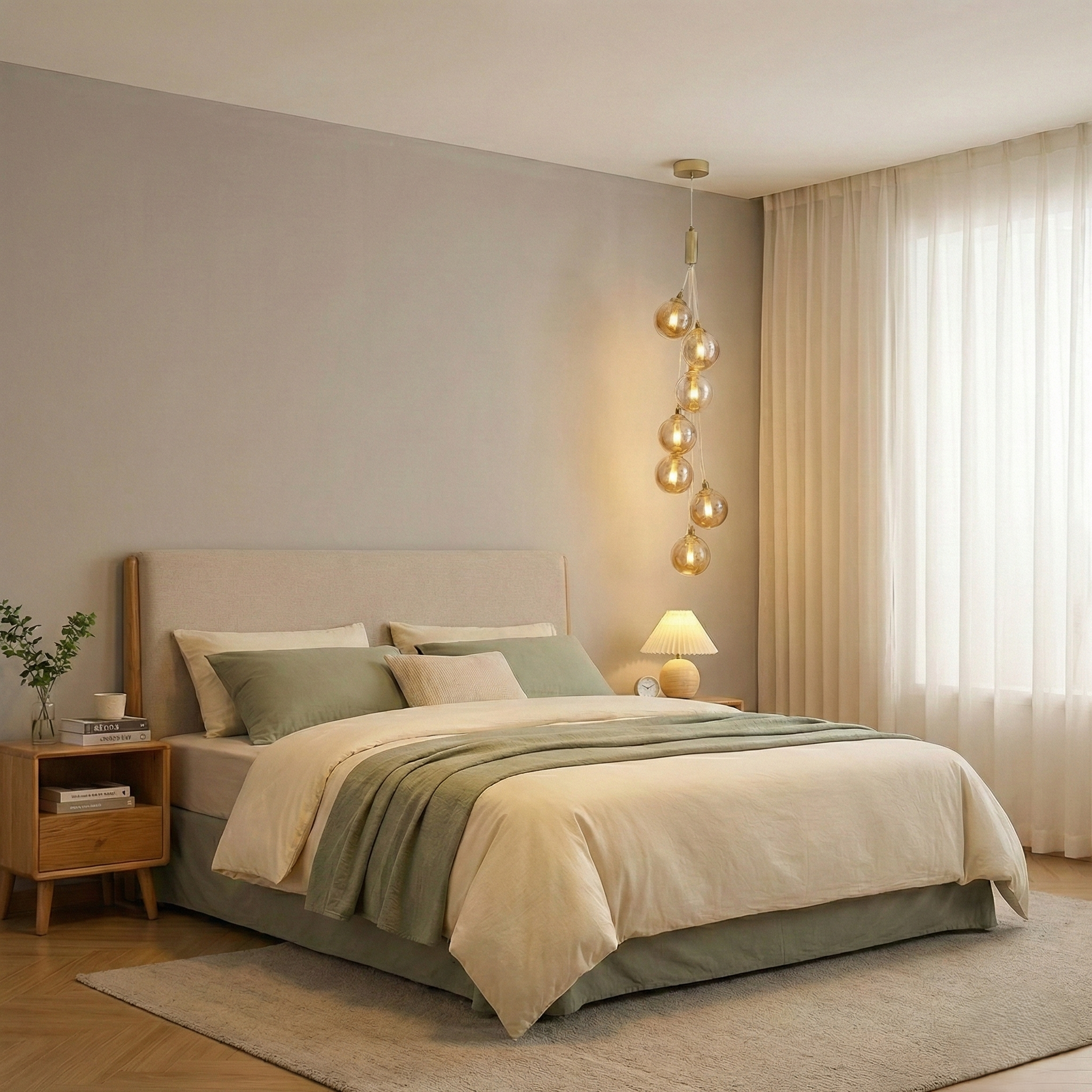 Cascading Elegance: A vertical design featuring 9 distinct light points that draw the eye upward.