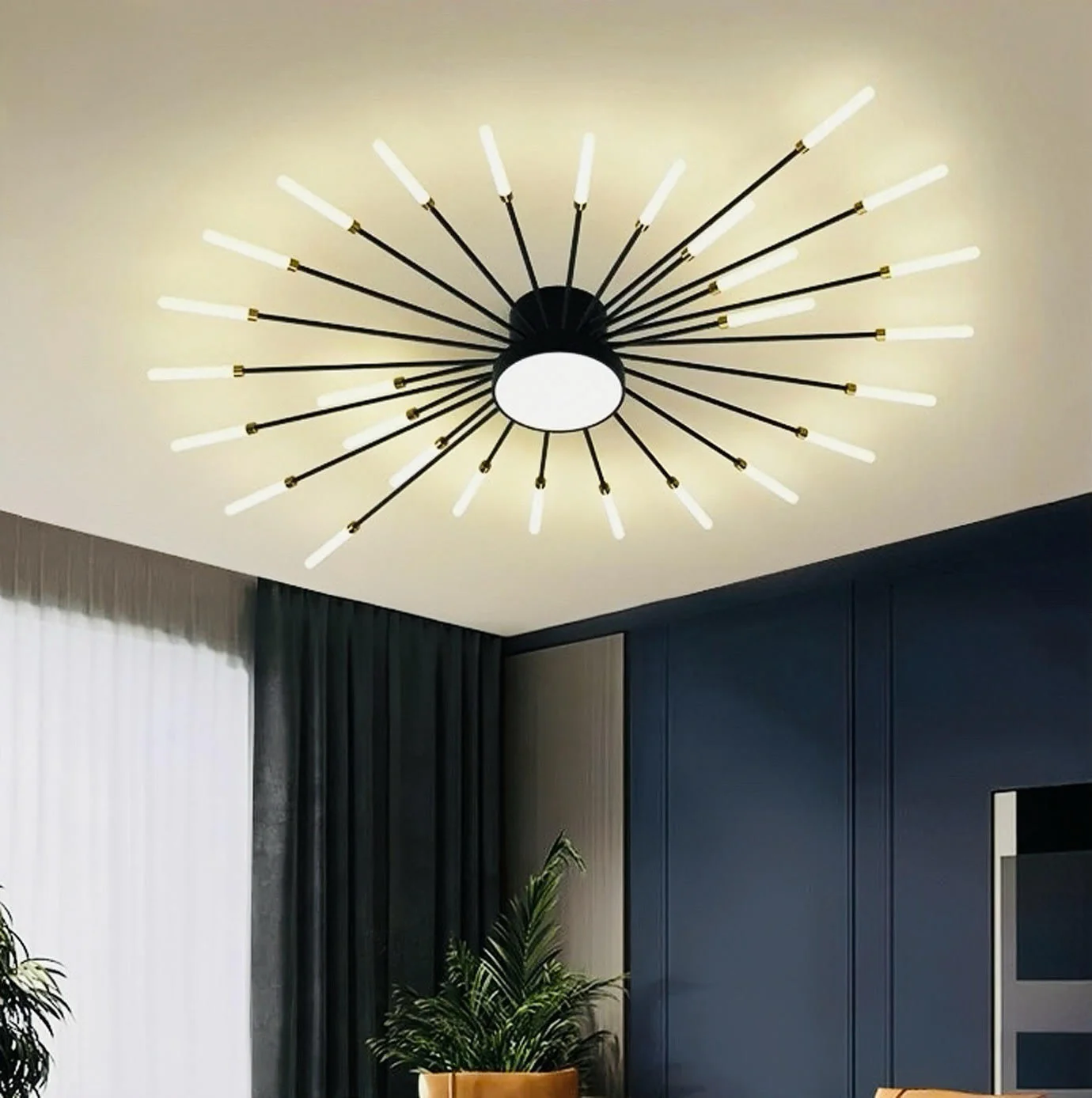 In StockUpgrade your interiors with the Sunflare Modern Ceiling Light, a perfect blend of contemporary design and radiant illumination. Inspired by a starburst pattern, this striking ceiling fixture features multiple sleek arms extending outward, creating a bold and luxurious visual impact.
