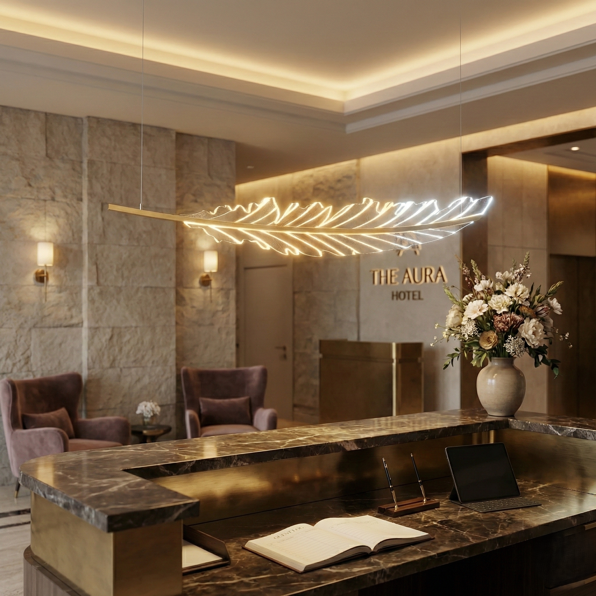 Artistic Design: A stunning, organic shape inspired by nature’s delicate forms (leaf/feather), adding a sculptural element to your ceiling.
