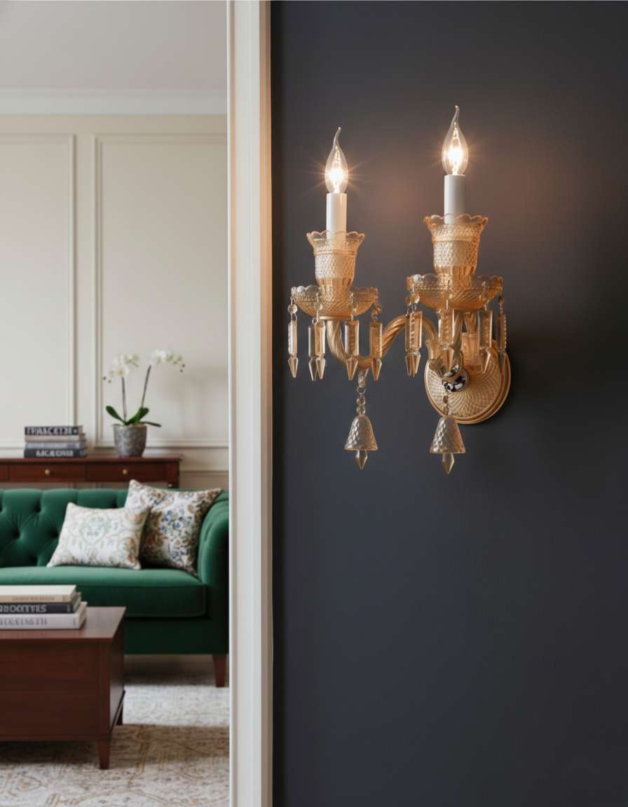 Crafted with a premium combination of durable metal, high-quality glass, and sparkling crystal accents, this wall light creates a stunning visual effect. The crystal detailing beautifully reflects light, producing a warm, ambient glow that elevates the overall atmosphere of your space.