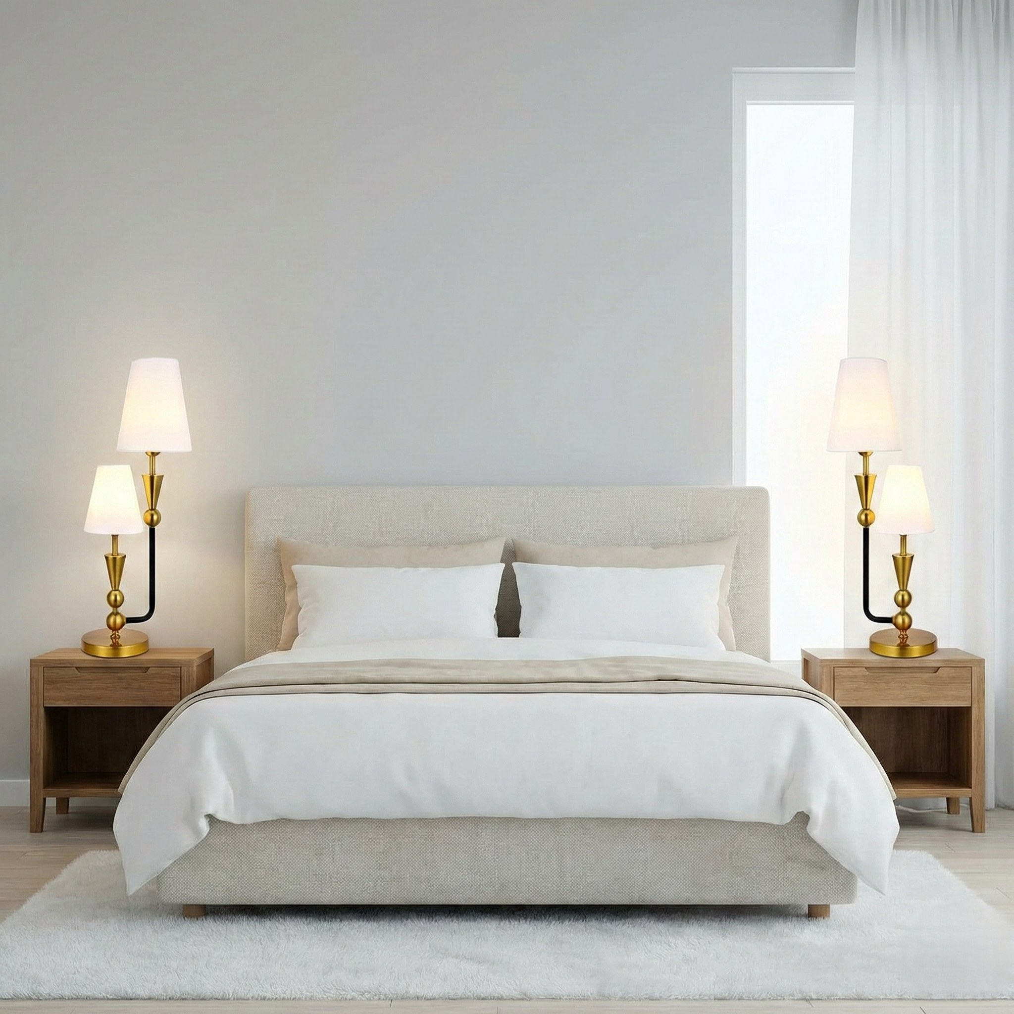 Designed to accommodate your preferred standard bulb, this lamp allows you to fully customize your lighting experience—from a crisp, bright daylight glow for reading to a soft, warm ambiance for unwinding. The premium cloth shades gently diffuse the light, eliminating harsh glare and casting a welcoming "radiance" across your space.