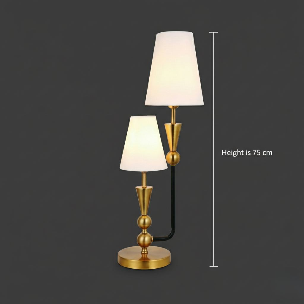 Bring a touch of sophisticated brilliance to your home with the White Radiance Table Lamp. Featuring a uniquely striking dual-level design, this piece pairs a beautifully sculpted, warm metal base with pristine white cloth shades. The classic combination of metal and fabric creates a transitional look that feels right at home in both contemporary living rooms and cozy, traditional bedrooms.